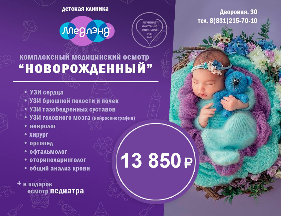 Ваша Детская клиника "Медлэнд" предлагает выгодную программу комплексного обследования малыша: